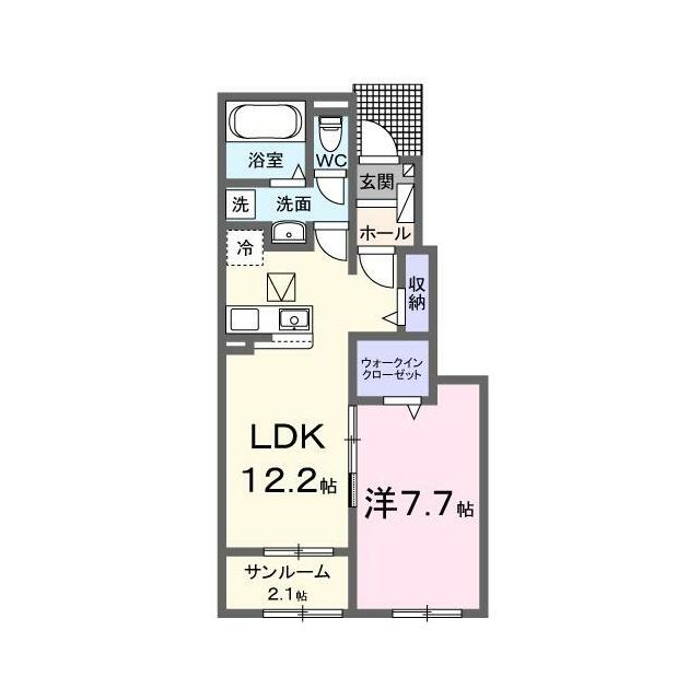 1LDK(洋7.7・LDK12.2・サンルーム) |