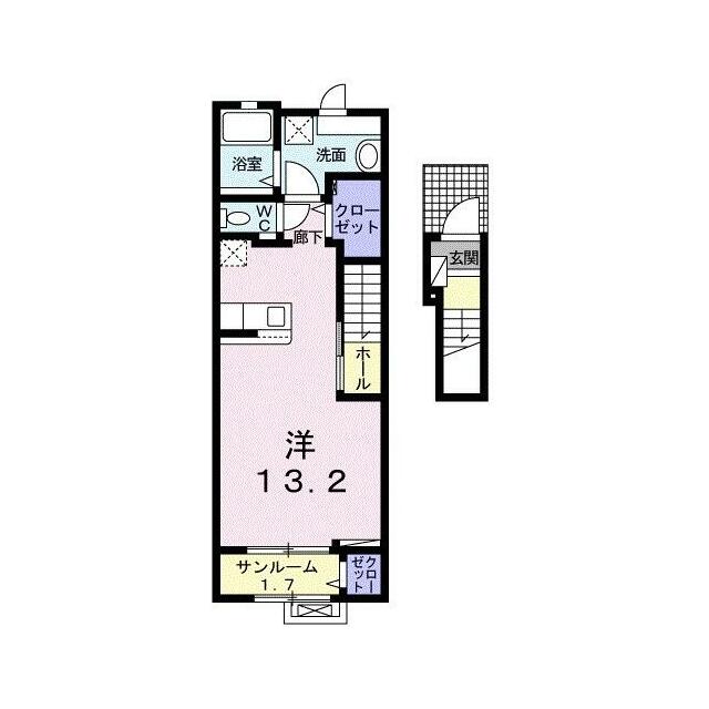 ワンルーム(洋13.2・サンルーム1.7) |